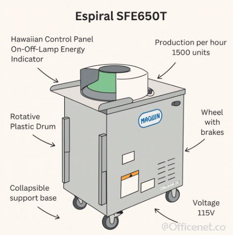 Con una capacidad aproximada de 1.500 unidades por hora, la Boleadora Espiral SFE650T es la solución perfecta para panaderías, pizzerías y puntos de reparto que buscan agilizar su producción sin sacrificar calidad.