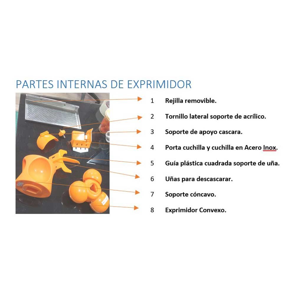 • La máquina de zumos industrial con cubierta transparente y cuerpo en acero inoxidable  es lo más recomendado por nuestros expertos por ser capaz de digerir una gran cantidad de trabajo. Exprimidor de naranjas (escoger del mismo tamaño) eficiente y máxima exigencia.