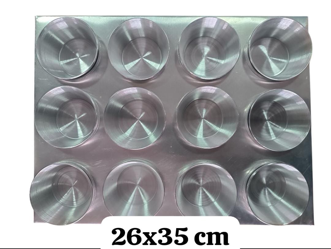Bandejas en Aluminio con 12 Capacillos removibles.