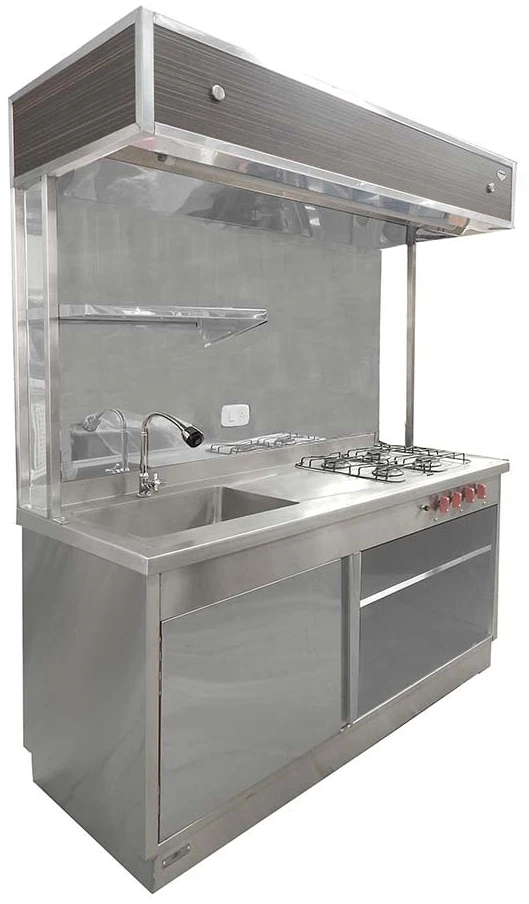 Especial para zona de producción: preparar y cocinar, lavaplatos, apoya vasos, bodega para platos y enseres.