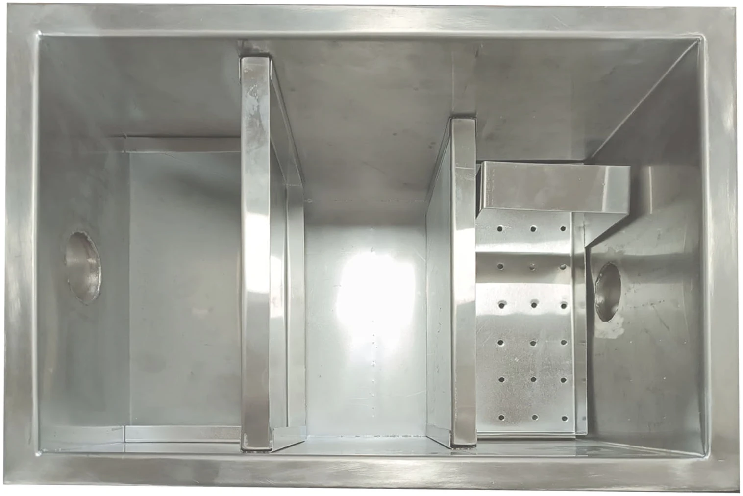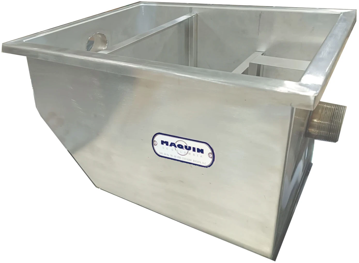 • Totalmente en Acero Inoxidable Ideal para restaurantes y zonas de procesos de comidas, permite separar los residuos sólidos evitando que entren a la red de alcantarillado  ;por medio de un tamiz y separación de grasas y partículas flotantes por medio de compartimentos. fácil limpieza.