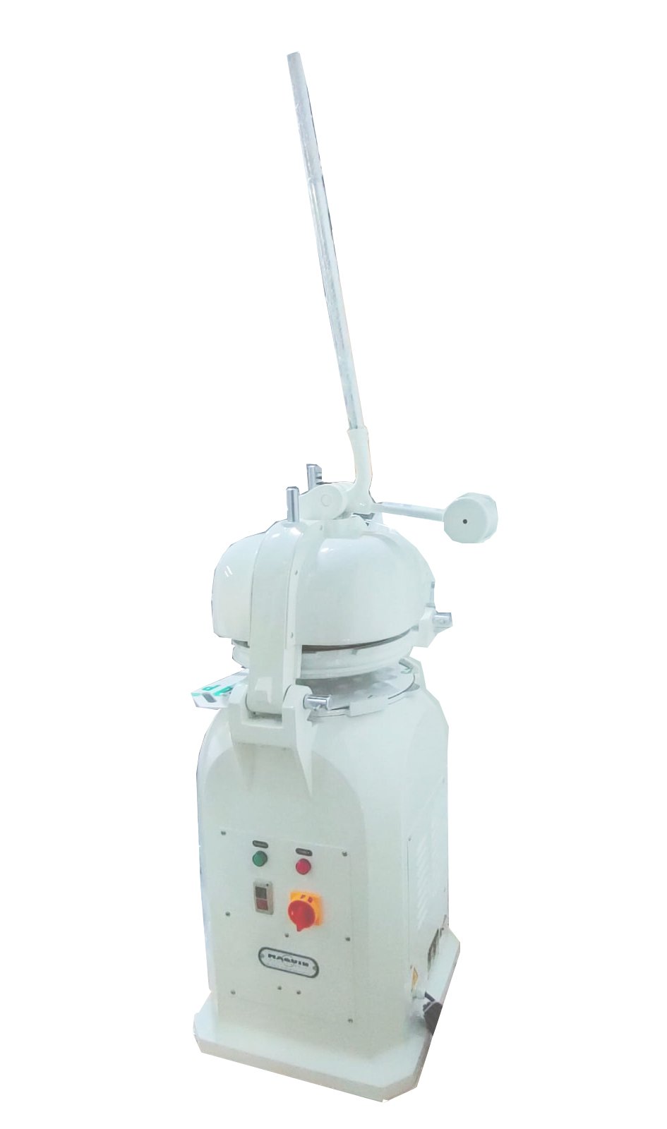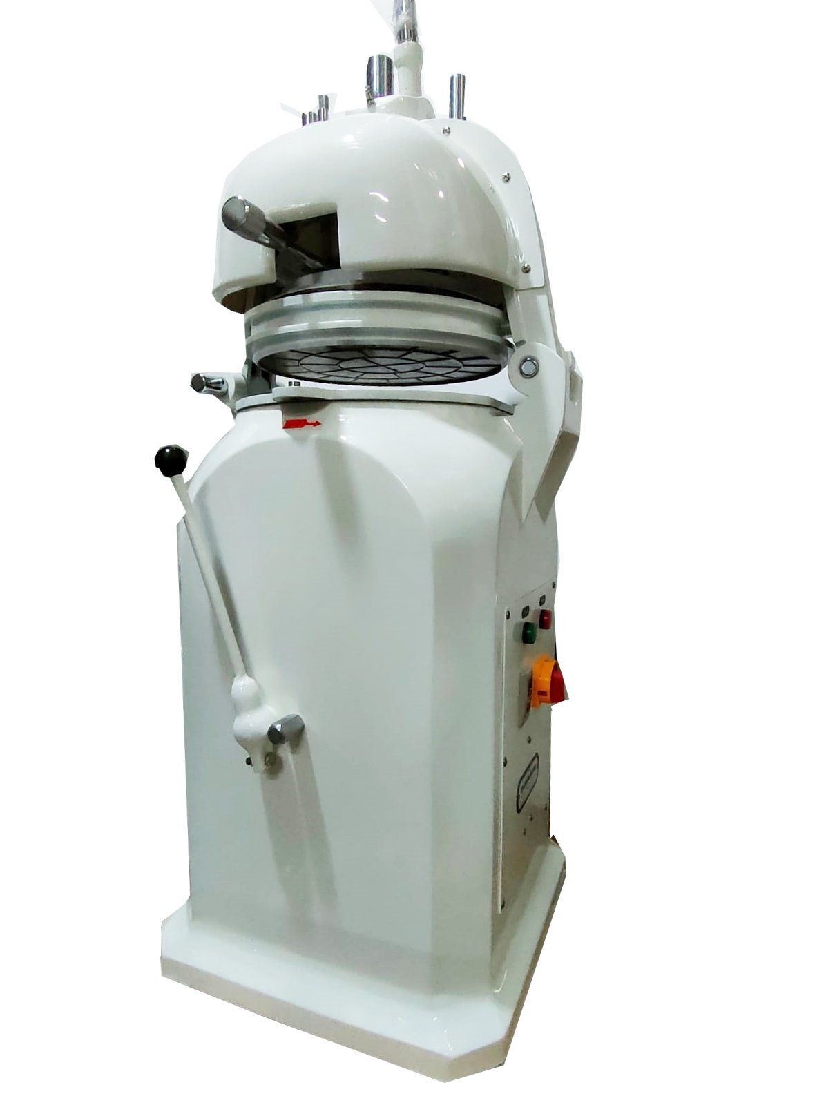 Palanca lateral que activa el motor que hace mover el sistema que moldea y forma las bolas de masa.
