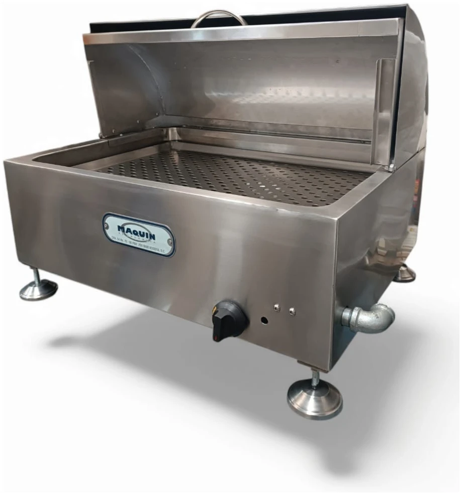 En el contenedor se coloca agua  y sobre la  bandeja se dispone el pan,  se prende el gas y gradua la temperatura con perilla ,al calentarse el agua  se cierra la puerta para que el vapor mantenga calor del  pan mientras se va sirviendo.
