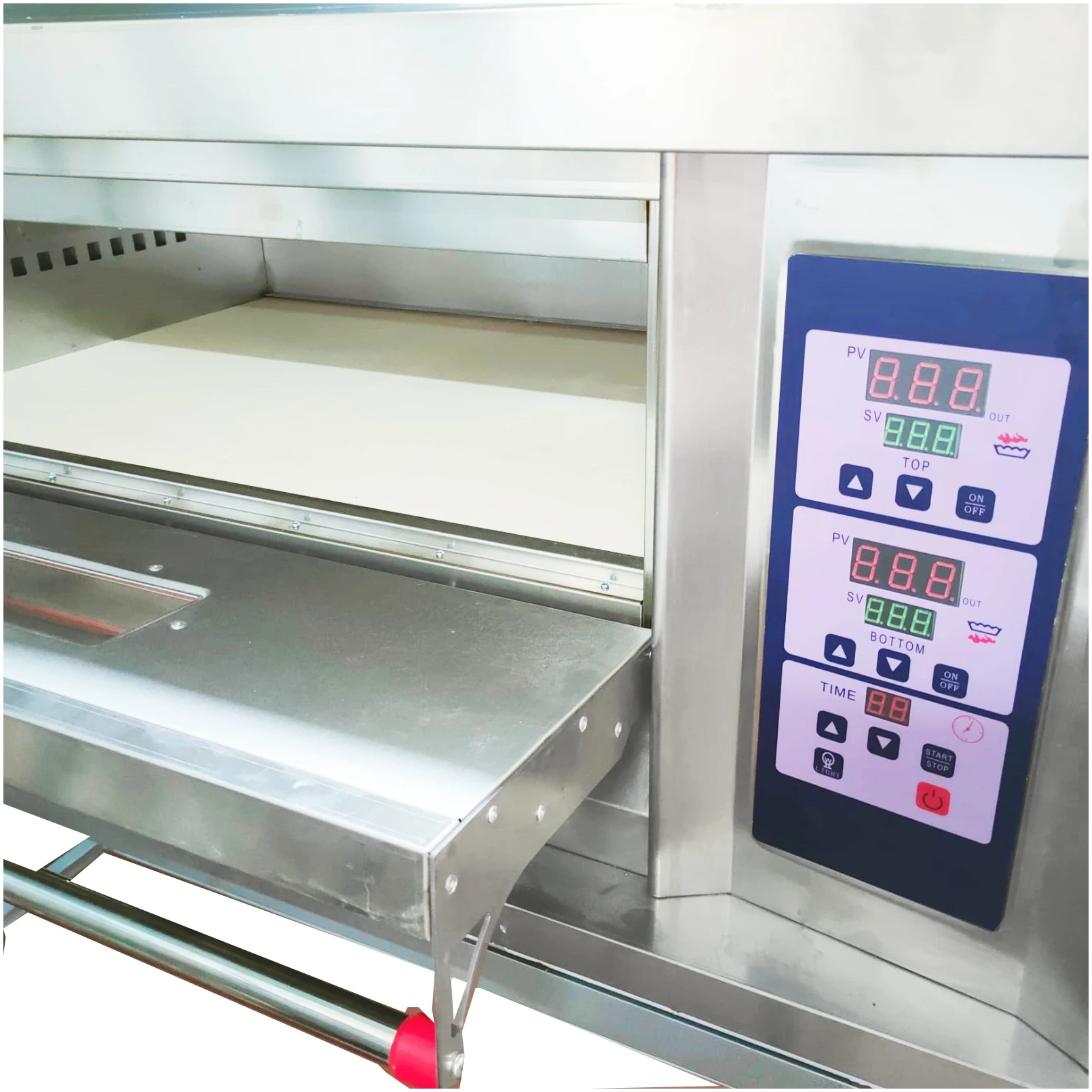 Cada vez que se apague el suministro eléctrico o se agote el gas que condujo a la llama de gas, el sistema detector de llamas «IC» cortará automáticamente la válvula de gas y enviará una alarma, lo que garantizará su seguridad y confiabilidad. Bajo consumo de gas, horneado más rápido y ahorro de energía, es adecuado para uso comercial.