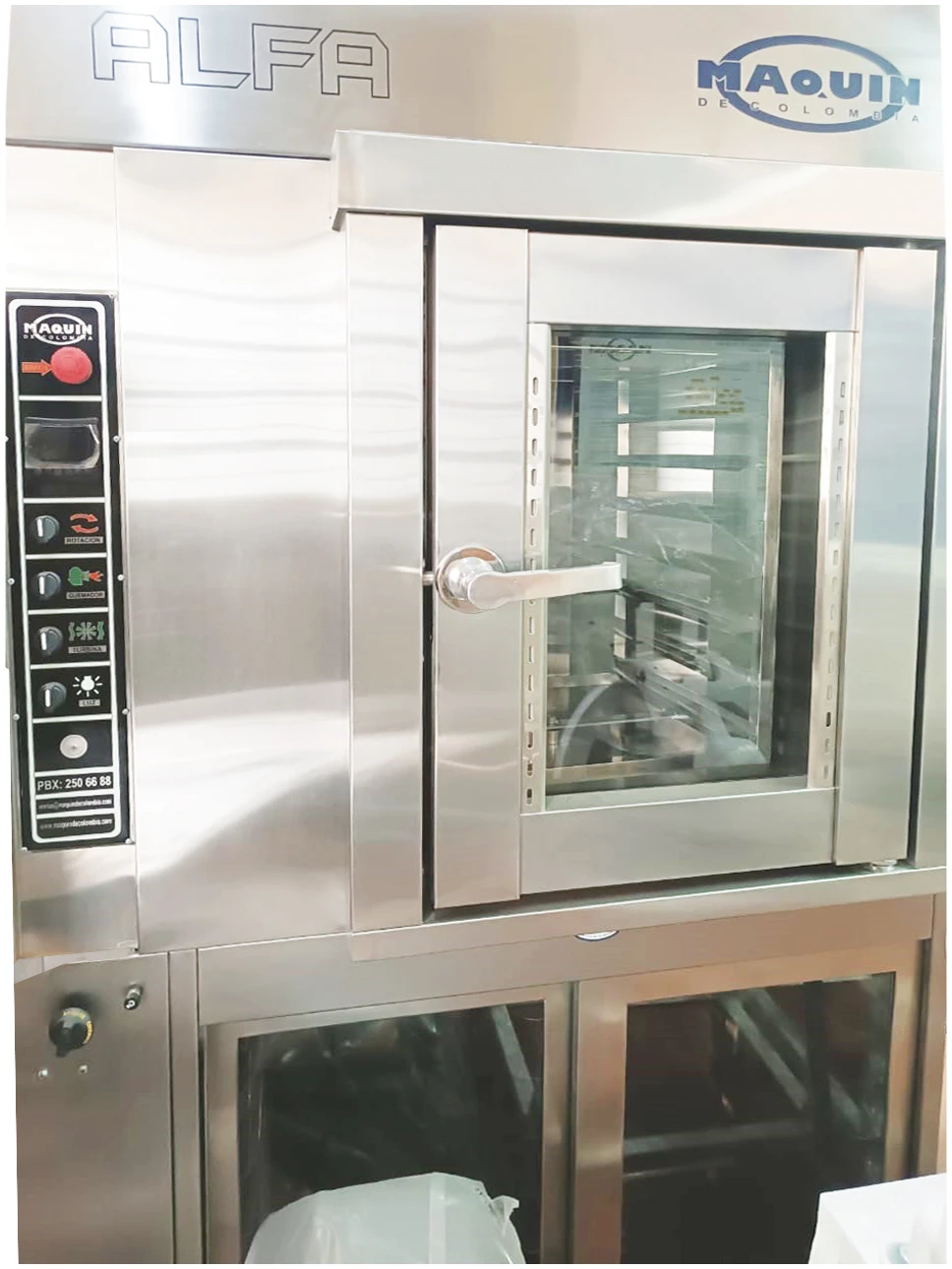 El Horno sobre base con cuarto de crecimiento con capacidad para 14 latas con calderín autoalimentado proporcionando el vapor y la energía justa, por su sistema de regulación de agua. Pirómetros de 300ºC para temperaturas programadas de acuerdo al producto.